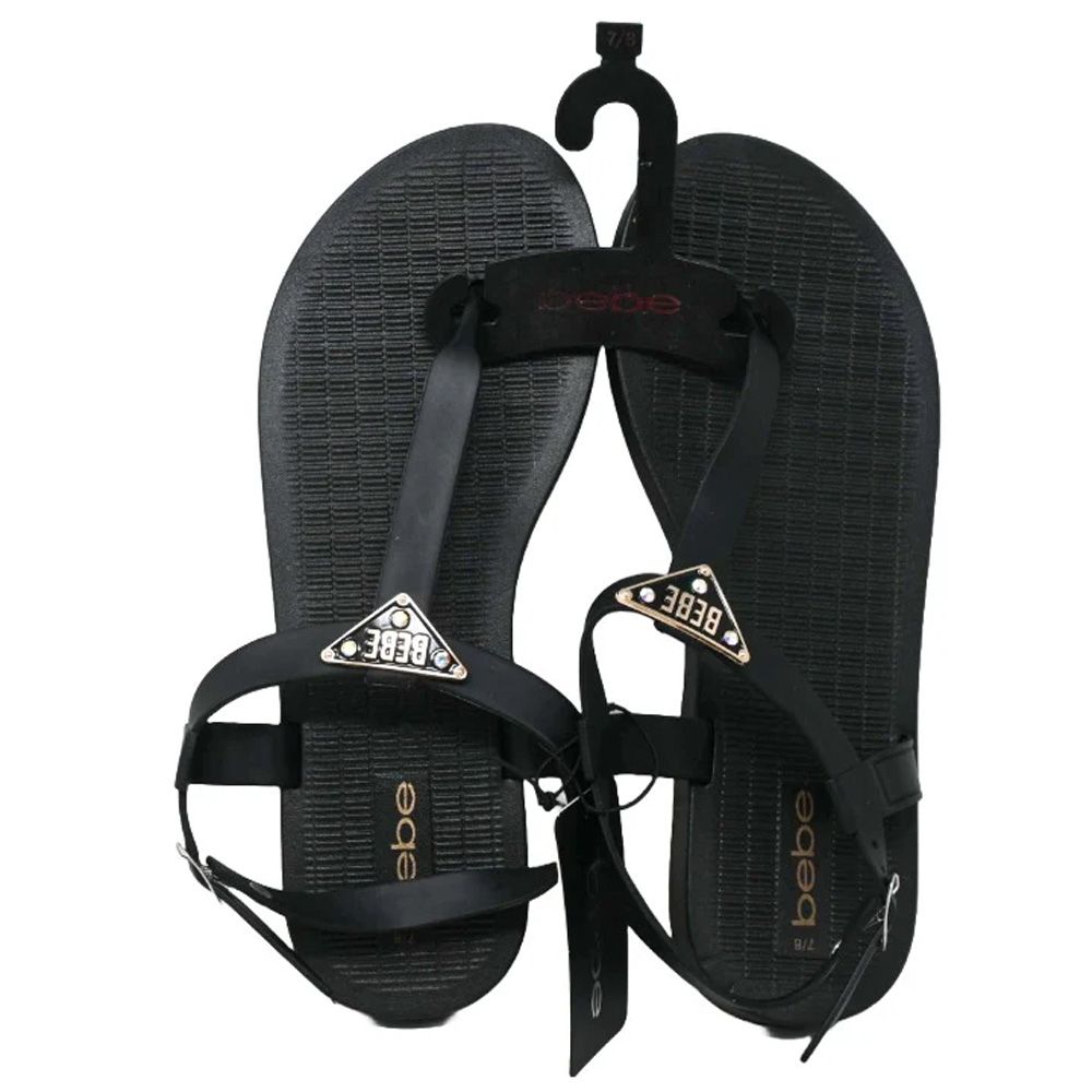 The Bebe Black Womens Pcu Wriangle Logo Plate 4-Asst Size is a sophisticated and modern essential for the style-conscious woman. These sleek black sandals feature a premium PCU construction, highlighted by a distinctive metallic triangle logo plate that showcases the iconic Bebe aesthetic. Engineered with high-quality materials, they offer exceptional durability while remaining remarkably lightweight for effortless, all-day wear. The ergonomic design ensures a soft and comfortable fit, providing a cushioned feel with every step. With an open and breathable design, these sandals are perfect for maintaining comfort during warm weather outings or casual urban strolls. Each pair comes equipped with a hanger hook for convenient retail display and organization.