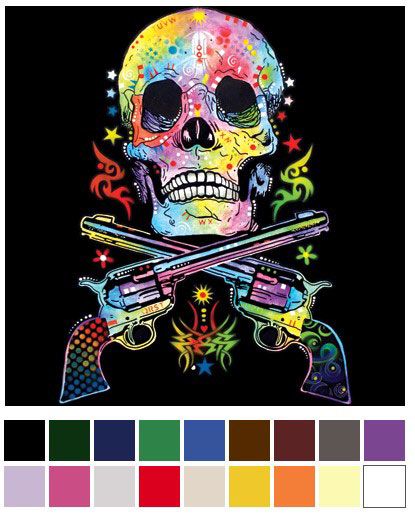 Design: Colorful Skull and Gun graphic
