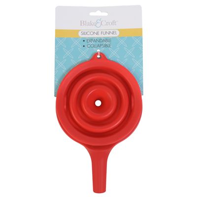 Add to WishlistMake kitchen and household tasks easier with this silicone expandable collapsible funnel, featuring a 4.5-inch diameter and 6-inch length. Designed for space-saving storage, this durable funnel expands for easy pouring and collapses for compact storage. The built-in handle provides a secure grip, making it ideal for transferring liquids, dry ingredients, or automotive fluids.