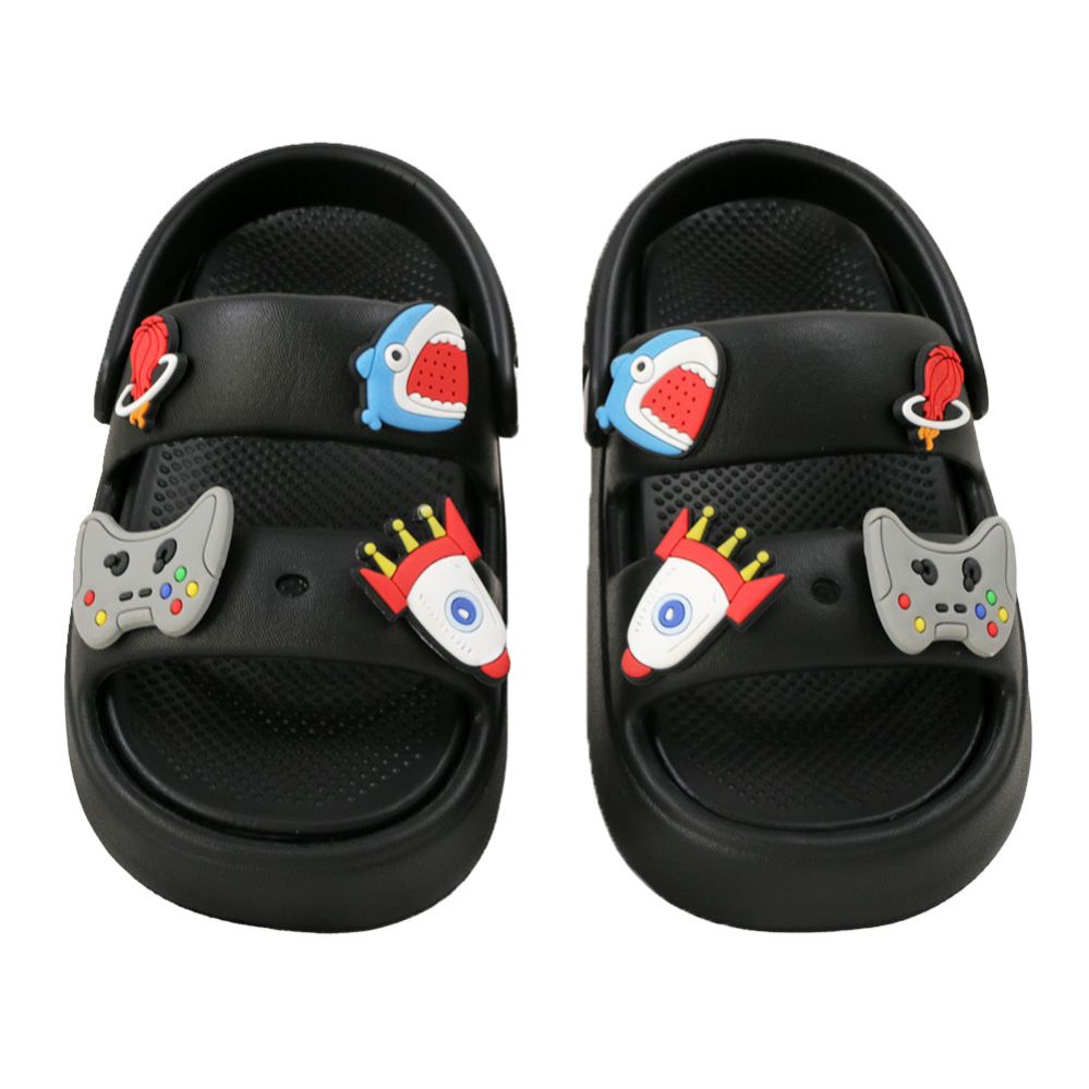 Add to WishlistThese Little Boy?s Charm sandals in black offer a comfortable and durable option for active kids. Featuring adjustable straps for a secure fit and a sturdy sole for all-day wear, they are perfect for casual outings and playtime. The sleek black design pairs easily with various outfits.