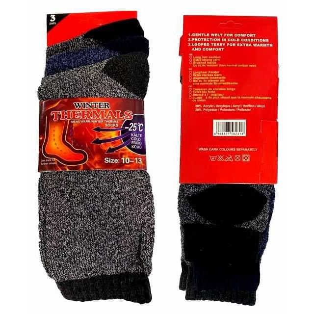 Add to WishlistKeep your feet warm and cozy during the coldest months with our Men's Winter Thermal Socks. Designed to provide superior warmth, these socks feature advanced thermal technology to trap heat. The thick, cushioned material ensures comfort when worn with boots. They fit sizes 10-13 and are essential for winter work, outdoor sports, or simply staying warm indoors.