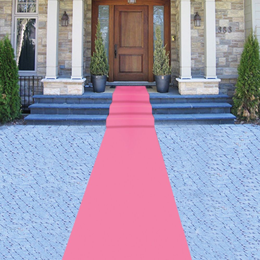 Add to WishlistWalk the pink carpet aisle runner. It is a red carpet runner with a new color. Made of a high-tech version of woven cellulose, our pink carpet is 15 feet long by 24" wide and comes with double stick tape. Each pink carpet floor runner is individually wrapped and